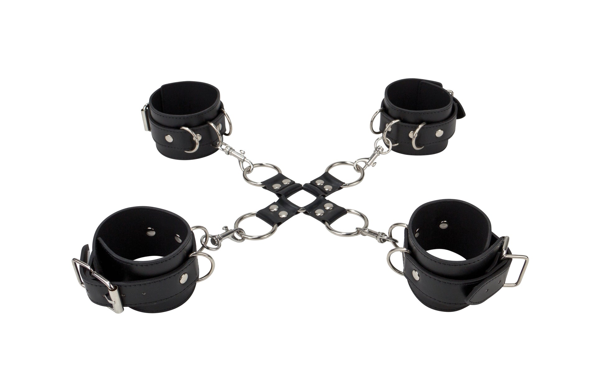 Looking for a hogtie cuff set that can do it all and is made to play hard? Look no further. The cuffs of Ouch! have quality leather straps with elegant stitching down the length of the straps. They are comfortable but incredibly secure. Use this hogtie to bind your partner from behind or in front of them to give you easy access! The straps have 6 holes to adjust the length, with metal fastenings and D-ring connectors to connect them. Use this toy on its own, or in combination with other bondage and BDSM products!
