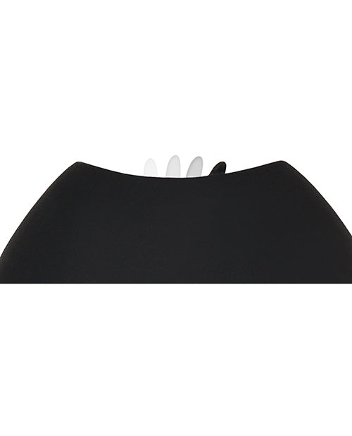 Lickity Slit Oral Massager Black by Evolveded Novelties. Orgasms in Lickity Split! Enjoy the best cunnilingus you have ever experienced with this silicone tongue flicking massager that tirelessly pleases your primary erogenous zone. The hard working tongue sits inside a creamy silicone recessed oval shape that cups your lips, creating a blissful connection that will send you over the edge! Explore the 7 speeds and functions to find the right rhythym for you, even underwater as it is completely submersible waterproof. Recharge is easy thanks to the included USB charging cable and an LED light illuminates the control buttons when in use, so you can even see in the dark! Size 2.1 inches wide by 2.82 inches high by 1.17 inches depth.  5 years warranty from Evolved Novelties.