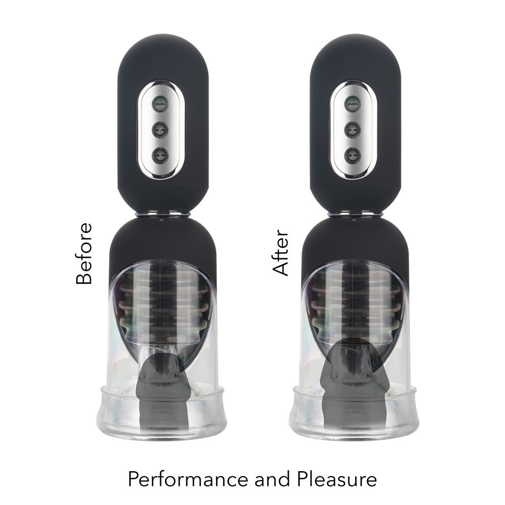 Dive deep into intense suction while the soft, vibrating internal landing pad uses the teasing ticklers to thrill your pleasure tool with full coverage stimulation. Enjoy powerful suction and a superior seal with two unique interchangeable donuts. Use the simple donut for your regular pumping session and the other ultra-tight donut for knee-shaking stimulation. This removable open-ended chamber sleeve is easy-to-use, easy-to-clean and requires no special care.