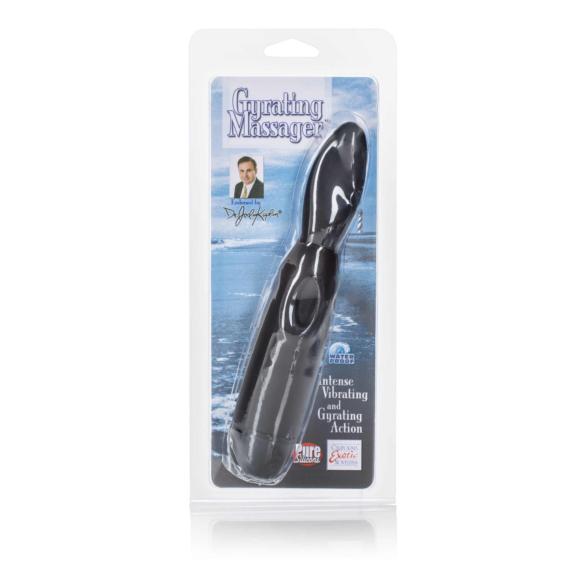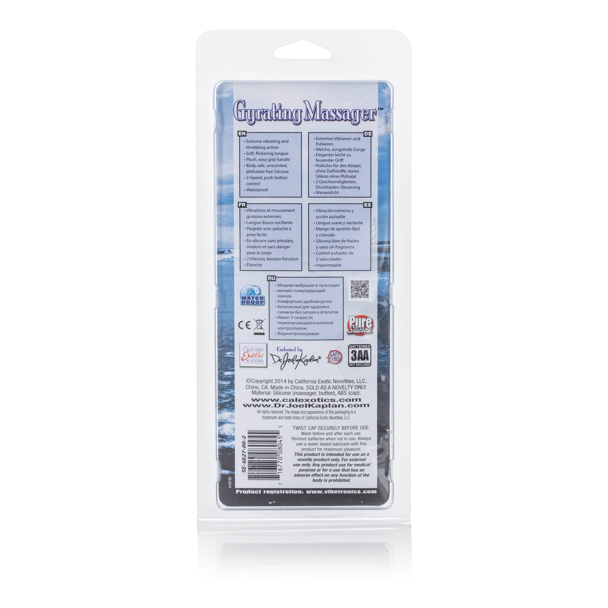 Extreme gyrating vibrating and throbbing massager. Soft flickering tongue. 2-speed push button control. Plush easy grip handle